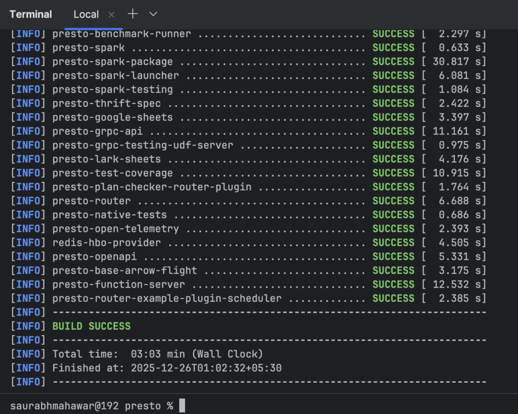 This step-by-step tutorial is designed specifically for beginners and first-time contributors who want to build Presto from source, run the Presto server locally, understand the codebase, and successfully submit their first pull request. By the end of this guide, you will have a fully working local Presto setup and a clear understanding of the complete contribution workflow, from Git setup to PR merge.