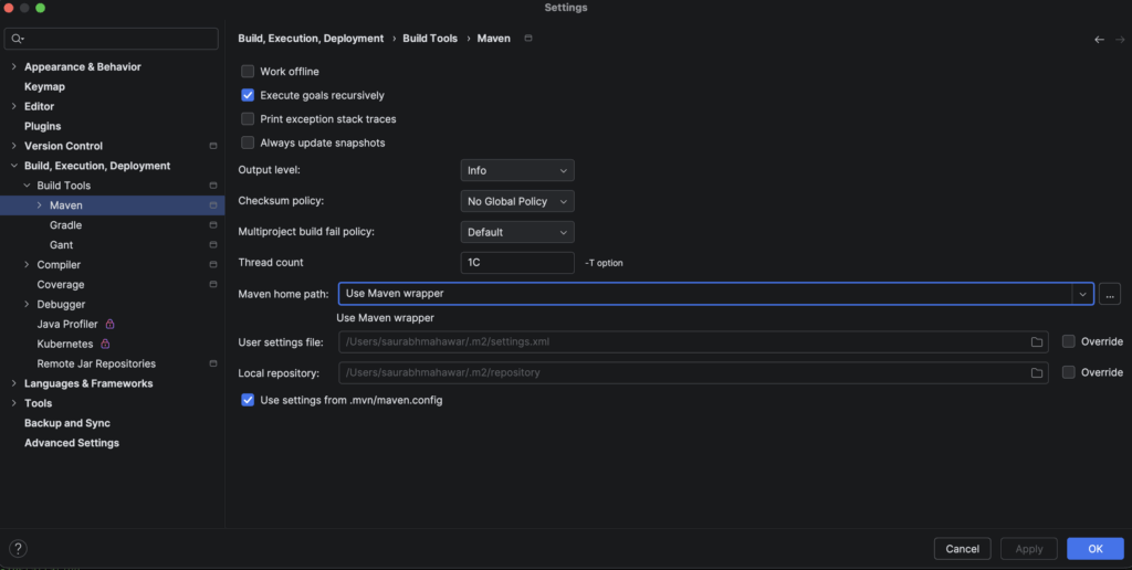 - Go to IntelliJ IDEA → Settings → Build, Execution, Deployment → Build Tools → Maven → Use Maven wrapper